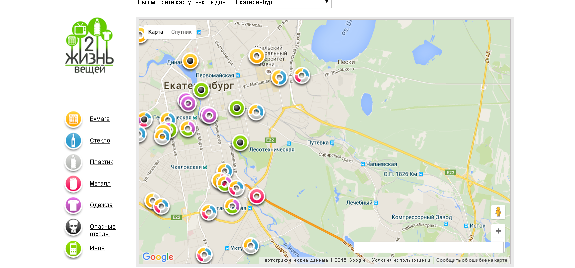 Екатеринбург вошел в проект «Вторая жизнь вещей», который реализует «Гринпис России». Теперь на сайте организации можно найти интерактивную карту, на которой обозначено 17 адресов приема вторсырья. Каждому пункту приема присвоен определенный цвет, в зависимости от материала, который там принимают. На данный момент жители Екатеринбурга могут сдать бумагу, стекло, пластик, металл, одежду, оргтехнику и опасные отходы, к которым относятся ртутные лампы и батарейки.