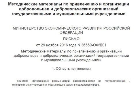 Методические материалы по привлечению и организации добровольцев и добровольческих организаций государственными и муниципальными учреждениями