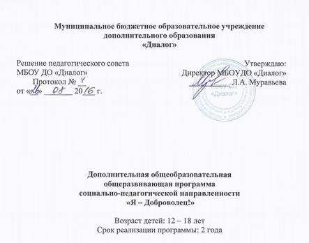 Я – доброволец: дополнительная общеобразовательная общеразвивающая программа социально-педагогической направленности