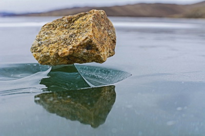 Весной на Байкале можно увидеть интересное природное явление. Днем лед подтаивает под брошенными камешками, а потом ветер выдувает лишнее. В результате получаются природные балансиры.