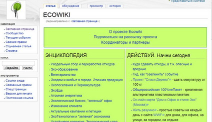 Информационный портал «Эковики» – это энциклопедия экологических проектов для всех, заинтересованных в проблемах экологии, с возможностью создавать свои статьи, редактировать и дополнять другие, тем самым существенно расширяя и обогащая проект.