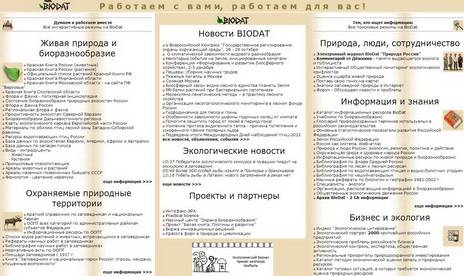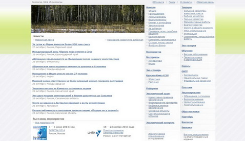 Основные разделы: новости, мероприятия, эко-аудит и экспертиза, лицензирование, литература, тендеры, красная книга и многое другое, посвящённое экологии.
