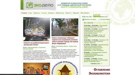 Сайт создается в рамках некоммерческого проекта. Содержит обширную коллекцию материалов по различным проблемам экологии: заповедным территориям, экологическому контролю и экологическим конфликтам, природоохранному инвестированию, экономической оценке природных ресурсов и т.д. Есть каталог Интернет-ресурсов, содержащий более 1500 ссылок