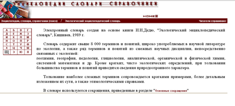 Электронный словарь создан на основе книги И.И.Дедю, «Экологический энциклопедический словарь», Кишинев, 1989 г.