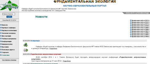 Научно-образовательный портал. Основная задача научно-образовательного портала «Фундаментальная экология» - формирование единого информационного пространства, объединяющего людей, работающих в области фундаментальной экологии.
